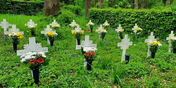 Zaterdagmorgen 29 april j.l. opnieuw met veertien vrijwilligers onderhoudswerkzaamheden uitgevoerd op het kloosterkerkhof.